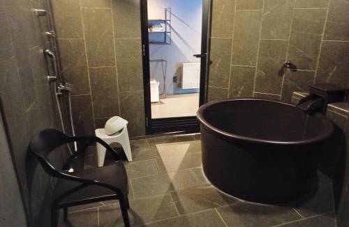 BathroomHairdryer, Toilet, Bidet, Towels, Bathtub, Shower, Bathtub or shower, Slippers, Free toiletries, Conditioner, Body soap, Private bathroom, Shampoo, Toilet paper, Toothbrush, BathrobeGeneralKey access, Fire extinguisher, Smoke Alarm, Heating, Trash cans, Air conditioningActivitiesSauna, Hot tubKitchenMicrowave, Dining table, Kitchenware, Wine glasses, Kitchenette, Electric kettle, RefrigeratorViewMountain view, Garden view, ViewLiving AreaDining areaOutdoorsOutdoor dining area, Terrace, BarbecueBedroomLinensRoom AmenitiesSocket near the bedSafety featuresAir purifiersPhysical distancingSingle-room AC for guest accommodationCleanliness & disinfectionHand sanitizer |