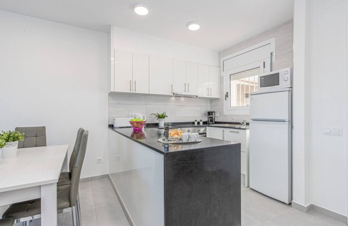 The apartment in Empuriabrava has 2 bedrooms and has capacity for 5 people. The apartment is comfortable, and is 77 m². The property is located right next to the beach. The property is located 50 m from Empuriabrava sand beach, 200 m from the supermarket, 10 km from the water park, 16 km from Peralada golf course, 20 km from Ave/Tgv Figueres train station, 65 km from Girona airport. The house is situated in a family-friendly neighborhood next to the sea.The accommodation is equipped with the following items: garden, garden furniture, fenced garden, terrace, washing machine, barbecue, iron, internet (Wi-Fi), balcony, heat pump, air conditioning in the living room and in some bedrooms, garage, TV, satellite tv (Languages: Spanish, German, French).In the hotplate of glass ceramics open plan kitchen, refrigerator, microwave, oven, freezer, dishwasher, dishes/cutlery, kitchen utensils, coffee machine, toaster and kettle are provided.