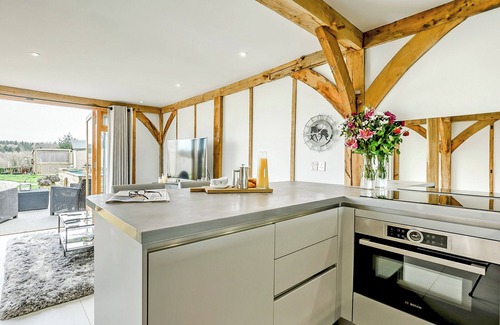 Shower Room: Cubicle Shower, Toilet. Electric central heating (underfloor in kitchen), electricity, bed linen, towels and Wi-Fi included. Welcome pack. Garden with patio, garden furniture, firepit and barbecue. Private parking for 1 car. No smoking.. Set within the heart of the beautiful Kent Downs, an Area of Outstanding Natural Beauty, Elm Retreat is in the perfect position to explore both city and coast with the historic City of Canterbury just eight miles away and the gateway to the coastline. Stylishly decorated and furnished to a very high standard by an award winning interior designer, you are sure to fall in love with this pretty lodge, where you can also be sure of a peaceful night’s sleep.