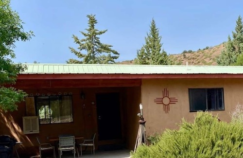 This unique newly remodeled 2 bedroom, 700+ sq ft stucco casita is surrounded by the Gila Wilderness. Enjoy plenty of room for your family to spread out and enjoy your vacation. The spacious living and dining area is comfortable and tastefully furnished with artwork depicting the local area. The large kitchen has a full-size refrigerator, stove, microwave, and coffeepot. It comes equipped with dishes and pots and pans. Two bedrooms with queen-size beds in each bedroom. An extra roll-away bed is available.