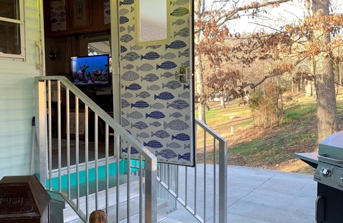 Visit your friends at Cricket Creek Campground. Bring your boat and park just outside the door, or rent a nightly slip at the marina. Bring your pole and spend your days fishing for crappie and bass in Table Rock Lake. Fry up your catch in a fully equipped kitchen stocked with the basics. Making meals is a piece of cake with a gas stove & oven, microwave and crockpot at your fingertips. Sip your cup of morning coffee or herbal tea on the spacious covered patio, which offers a propane grill and plenty of comfy seating to watch wildlife and enjoy the beautiful outdoors. If you find the hammock, you may decide to stay there all day!