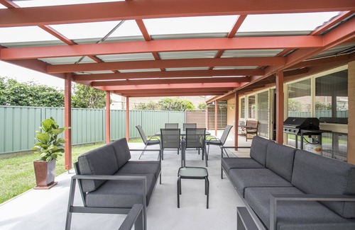 A four-burner hooded BBQ is situated on the back pergola, just waiting for the steaks and sausages to arrive. Let the boys cook the BBQ and enjoy a beer while discussing the catch of the day while the ladies chill out with a glass of wine and discuss the next shopping or beach visit.