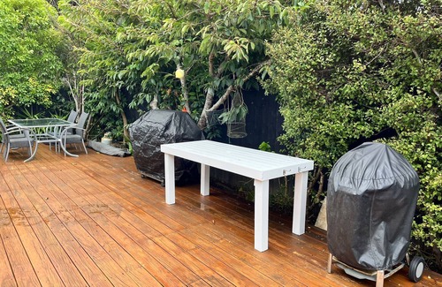 Huge wrap around deck with 4 burner gas BBQ and a Kettle BBQ if charcoal is more your thing, please bring your own charcoal etc…