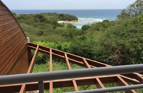 On the ground floor: an air-conditioned bedroom of 16 m² with its centenary double bed (160 X 190) with mosquito net, a centenary wardrobe, and safe, a television (canal +), a bathroom water with hairdryer and a gallery with its living room overlooking the sea and the forest.