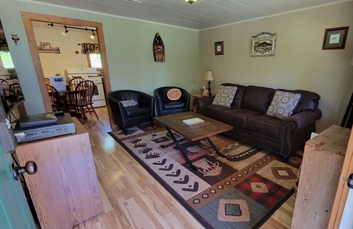 Inside the cabin you will find 2 queen beds, 1 full bathroom, fully equipped kitchen and comfortable living room. The living room has a 55" Smart TV and Blu-ray/DVD player.