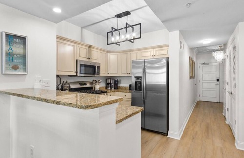 The well-equipped kitchen features upgraded stainless steel appliances (including a gas range), granite countertops and a breakfast bar that is perfect for serving meals. A tastefully furnished living area with comfortable seating and balcony access creates a great space to unwind after a long day on the go. The master bedroom features a king-sized bed, en-suite bathroom with a jetted tub & walk-in shower and direct access to the balcony. The second bedroom offers two queen-sized beds and an attached full bath with a shower/tub combo.