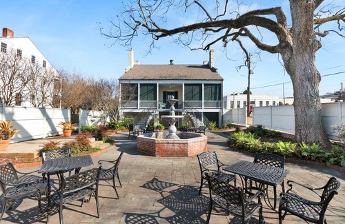 Both floors have covered porches that provide access to the iconic courtyard, all perfect spots for coffee or cocktails. The meticulously landscaped private courtyard is complete with statuary, seating for 16, and flowerbeds. Guests can enjoy a cup of coffee or a peaceful afternoon in the gardens while still being close to Downtown Natchez.
