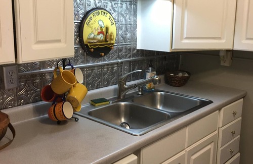 The kitchen is furnished with a side by side refrigerator with ice maker, dishwasher, microwave, toaster, two coffee makers (12 cup and Keurig coffee maker) and self-cleaning oven. Dishes, silverware and utensils are included for your convenience, as well as thick, fluffy towels and linens. We have a second Keurig coffee maker upstairs on the coffee bar.