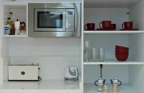 It is an apartment with two bedrooms each with its own balcony, one with double bed and one with two single beds, a bathroom, fully equipped kitchen with refrigerator, microwave, kitchenware, crockery and cutlery, ceramic hob, oven, coffee maker, toaster, and everything you need to prepare your meals.