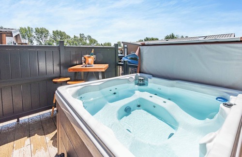Large patio doors flood the living area with natural light and lead out onto a private decking area, where you’ll find an inviting outdoor hot tub, complete with additional privacy screening, offering the perfect spot to relax under the stars after a day of exploring the beautiful Yorkshire countryside.