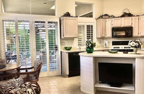 Reserved 11/22 - 3/23. Adorable Tiffany model turnkey furnished with 3 TV's, 2 bedrooms, 2 bathrooms, Living room and dining room off the front entry. Kitchen and family room open onto a covered patio with BBQ. Sun City Palm Desert is a 55+, gated community with 2 golf courses community pools, tennis, pickle ball, club houses, postal center, and so much more. Utilities, Cable TV and Wi-Fi paid by Landlord. Houzlet publishes listings on Vrbo; which in turn, allows tenants to instantly rent seasonal rentals. Houzlet’s properties are managed by licensed real estate agents. Although the property is an instant rental, it’s possible there can be another pending application. If the home is not available, we can offer you another suitable option or you can cancel for free.