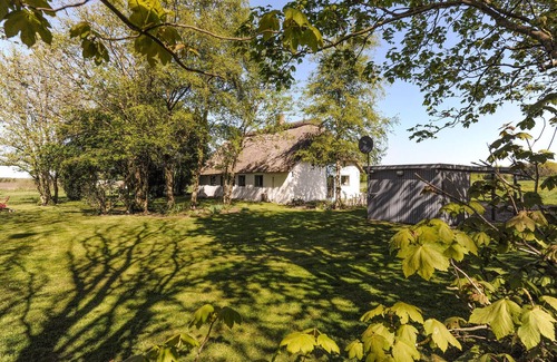 Experience relaxing days in an old thatched-roof house surrounded by meadows and trees.