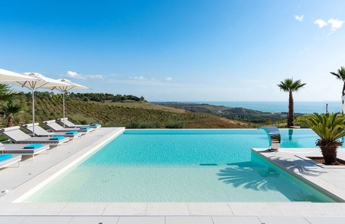 Villa Argos is a luxury villa with swimming pool situated near the town of Ribera, "the city of oranges", 40 km north of Agrigento. A well-kept, lush, Mediterranean style garden encompasses this exclusive property. Set in a splendid panoramic location, it offers charming views over the surrounding landscape and the sea. These views are to be enjoyed especially from its large, fully-equipped terraces and overflow, saltwater pool. The property, which has undergone recent renovations, features a welcoming interior furnished with taste and comfort in mind. The villa is equipped with air conditioning, heating, wi-fi, Sonos home audio system, Sat-TV, washing machine, dryer and dishwasher.