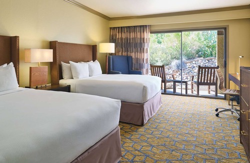 Ideal for groups of friends, colleagues or larger families who wish to book a hotel suite in Tucson, the 2 Bedroom Casita Suite With Patio and Parlor features separate living and sleeping spaces. With a total of two bedrooms and two bathrooms, this suite offers one King-sized and two Queen-sized Hilton Serenity beds, complete with premium 250 thread count sheets to lull you into a blissful slumber. At the end of the day, light a cozy fire and gather in the separate parlor over drinks from your in-room wet bar. A private patio lends additional space where you can relax as you enjoy the beautiful desert weather. If you want to have more visitors over, there’s also a sofabed to comfortably accommodate them. Nestled in the middle of the spectacular Sonoran Desert, hotel sprawls across 500 acres. Boasting beautiful views of the Catalina Mountains, this hotel features modern and sleek suites with minibars, custom-designed beds, premium linens as well as private patios and balconies. Select suites add separate living spaces and sofabeds to comfortably sleep any extra visitors you may wish to have over. Guests of the hotel can busy themselves with a wide range of on-site amenities such as a 45 holes championship golf course, 31 tennis courts, 24/7 fitness center, four restaurants, a spa, pool with a waterslide, and hot and cold whirlpool tubs. For business travelers, there’s even a business center and 65,000 square feet of meeting space. In November 2022, Hilton and Peloton Interactive, Inc. announced an industry-first partnership, making Hilton the first hospitality brand to feature Peloton Bikes across its entire U.S. hotel portfolio of 18 award-winning brands. Nearly all 5,400 U.S. Hilton-branded hotels - from Hampton by Hilton to Waldorf Astoria - will feature at least one Peloton Bike in every fitness center, providing guests with a more holistic wellness experience, including access to Peloton's world-class instructors and expansive connected fitness content. For more information regarding Hilton and Peloton Interactive, Inc's partnership, please contact Hilton directly.
