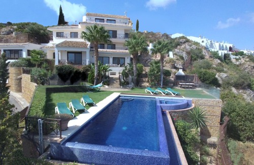 A magnificent villa with stunning views of the coastline below and on clear days Morocco and the Atlas Mountains.