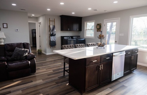 Savor country living at this farmhouse that comes with 2 bedrooms, living area, fully equipped and stocked kitchen, dining area, washer, dryer, dishwasher and smart TV's with easy access to Netflix, Amazon Prime, Hulu and more with our high speed internet.
