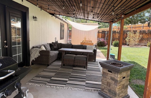 Make yourself at home in this 3-bedroom Farmington retreat. We are centrally located and only 1.5 miles from the new Mormon Temple and College. This superb house offers a king bed, 2 queen over twin XL bunk beds, perfect for families or groups. Enjoy the enchanting living room with a cozy sofa bed for extra guests. With heating and AC your comfort is guaranteed. The 2 bathrooms feature refreshing showers. This home features a big backyard with a play area for children, as well as, ample space for your pets to roam. There is an outdoor sofa and grill, great for entertaining. You're sure to make fantastic memories with a stay at our place.