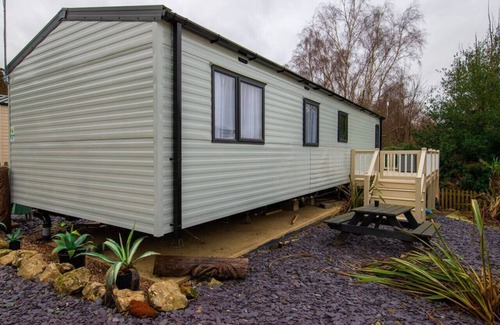 Experience a contemporary 2-bedroom caravan nestled in the picturesque wooded enclave of the park with a a Hawaiian Tiki culture decor. Immerse yourself in the serenity while savouring outdoor meals or basking in the sunshine on the expansive decking. The caravan features a master bedroom with an ensuite toilet, a twin room & additional sofa bed if needed. The fully-equipped kitchen invites you to indulge in delightful dining experiences. The property has private parking suitable for 2 cars.