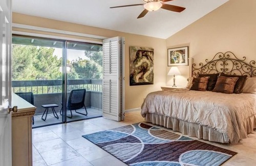 Executive style corporate living at its best with 4 BR and 2 living areas in beautiful Casitas Coronado with access to Pool and Tennis Courts. Living room with fireplace and library, Dining room with views. Gourmet kitchen with lovely cabinets, granite countertops, and stainless appliance package...Den open to kitchen area. 4th bedroom with sauna. 2 guest bedrooms on Upper Level with whirlpool bath. Master suite with vaulted ceilings, balcony views, and luxury bathroom with whirlpool tub, double sinks, and granite tops. (Amenities:Travertine flooring, private patios, all utilities paid, weekly housekeeping services, access to pool and tennis courts....Fully furnished) Houzlet publishes listings on Vrbo; which in turn, allows tenants to instantly rent seasonal rentals. Houzlet’s properties are managed by licensed real estate agents. Although the property is an instant rental, it’s possible there can be another pending application. If the home is not available, we can offer you another suitable option or you can cancel for free.