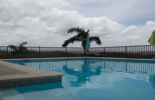 This is a 4 bedroom 3 bath home in a beautiful rural location, swimming pool, , roof deck, gym room, basketball court, walking track, Solar energy-no blackouts,15 minutes from a town of 20,000 with shopping, 20 minutes from a beautiful Caribbean beach with 80-degree water, and 45 minutes from the capital city of San Juan with International Airport. A great place to get away and de-stress. Ideal location for family reunions, weddings, honeymoons, and anniversary parties. No passport required.