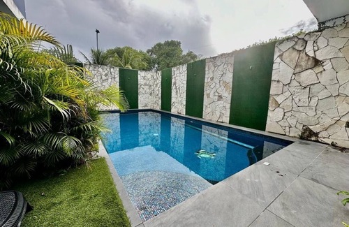 Playa del Carmen is waiting for you at this welcoming 4-bedroom villa. With 2 king beds, 2 queen beds, and 1 full bed, guests will have plenty of space to relax. The property features 5 bathrooms with amenities like a hair dryer and shower. AC, WiFi, and coin laundry are also available for your convenience. It's easy to see why you'll be able to unwind at our place. The Pool is ready yo be enjoyed under the carribean sun with a stone oven next to. Perfect to relax or enjoying the city while staying at a high quality private place that makes you feel that special person you are. If you need anything we are always happy to make your stay even better just by letting us know. Kitchen is fully ready and spacious for a big group if needed.