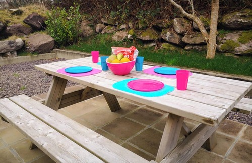 This is a beautifully designed holiday home with lovely tiled floors, beamed ceilings, comfortable sofas, electric fire plus free WiFi. It has been tastefully decorated and well maintained with underfloor heating on the ground floor. It has an open plan living area, combining the kitchen, dining with big dining table perfect for gatherings, and living room. Also on the ground floor, are 2 twin bedrooms and a family bathroom. On the first floor is a master double bedroom (en suite shower room) and 1 twin (en suite shower room). There is a nice back garden area (not enclosed) with a picnic bench so you can sit outside and enjoy the long summer evenings.