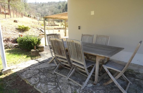 At the gates of the historic city of Cahors, but in a quiet countryside environment, you will benefit from comfortable single-storey accommodation...Cahors offers you all the amenities, on the edge of the Lot, between vineyards and causses. You are located at the crossroads of the very varied Lot landscapes. Single-storey gîte with direct access to a large fenced garden. Located 5mm from the city center. Very quiet and relaxing place. Kitchen / living room, living room, 2 bedrooms (1 bed for 2 people 160x200, 1 bed for 2 people 140x190, 1 bed for 1 person 90x190), Shower room with WC. Electric heating . Large private terrace partly covered with garden furniture and barbecue. Enclosed land. Private car park. Provide a resort insurance certificate.