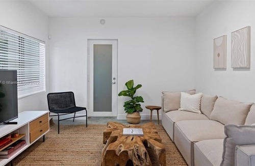 Stylish and spacious, this is a dream home on a quiet street in a plum pocket of Miami Beach. Designer done and fully furnished, it is move-in ready with 5 bedrooms, 3 bathrooms, an attached garage and fenced off-street parking. High ceilings, light wood floors, and architectural Art Deco details highlight elegant Miami Beach living. The modern primary bedroom with private access is flanked by a TV room and has a second-floor bedroom, workout space, office or additional walk-in loft closet. There's also a very private backyard for entertaining or quiet evenings to enjoy outdoors. Easy to show and available for a 1-year lease. Houzlet publishes listings on Vrbo; which in turn, allows tenants to instantly rent seasonal rentals. Houzlet’s properties are managed by licensed real estate agents. Although the property is an instant rental, it’s possible there can be another pending application. If the home is not available, we can offer you another suitable option or you can cancel for free.