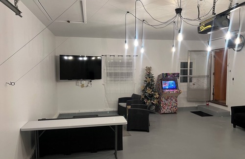 Home located in a quiet neighborhood with mature oak trees. Cozy living room with large sectional and smart tv. Fully equipped kitchen complete with complimentary coffee bar. Dining room with enough seating for 10. Bedroom 1 has a queen bed, smart tv, and desk. Bedroom 2 has a queen bed, smart tv, half bath, and full size sofa. Bedroom 3 has two full size beds, and a smart tv. Full bath has tub shower combo. All soaps, towels, and linens are provided. Garage turned into game room, seating area, folding table with 10 chairs, putting green, darts, arcade game, corn hole, smart tv, gas grill, and more. Large driveway with enough space for multiple cars or boat. Large yard.