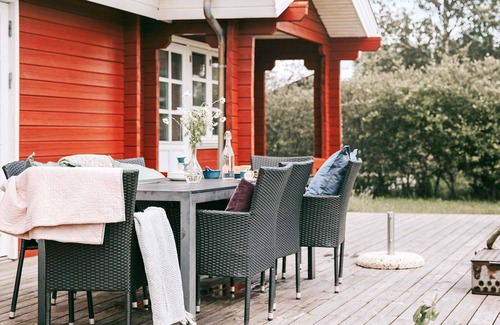 Holiday cottage located on 825 m² natural plot with lawn. The house was built in 2011/2012 and has 46 m² large living room in connection with the kitchen with e.g. dish washer. 3 large bedrooms with plenty of room for 8 people, large beathroom with washer and underfloor heating and a guest bathroom with underfloor heating. Large terrace and carport.A refundable deposit might be charged closer to your check-in date. Thesecuritydepositensuresasmoothstayandcoversany additionalservicesorconsumptioncharges.Thisdepositcoversutilitiesconsumedduringyourstay andanyadditionalservicesthatmaybetaken.Thefinalamountwillbeadjustedbasedonactualmeter readings,actualusageofextraservices,andanyremaining balancewillberefundedwithin21daysaftercheckout.Thisdepositsimplyactsasaprepaymentforchargesthat youwouldanywayspayfor,ensuringaseamlessstayand check-outexperience.