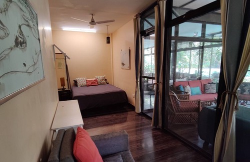 This ecological 3500 sq ft villa with solar panels on a 4.5 acre organic farm stuns with its exotic poolscape, unique design and lush jungle garden.