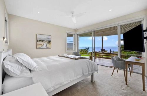 A luxurious beach house with the dining roomas the main meeting point, openingout to the expansive front deck. A beautiful spot where you can spend hours watching the waves roll on to the beach or enjoy a BBQ oricy cold beverage taking in the scenery. With its elevated position, it is private yet takes in the expansive views out over the ocean and down to Palm Beach.