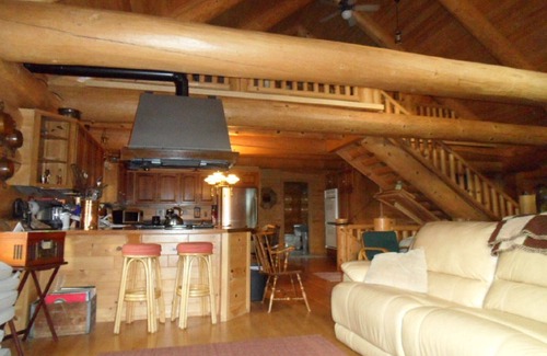 The log home has central heat and air air conditioning. Firewood is provided for the soapstone wood burning fireplace in the great room.