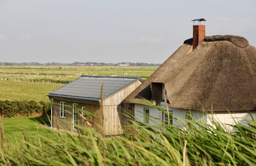 In the reed-covered holiday home Seegut you can go on holiday at any time of the year: in the spring, when the lambs are born and the sun warms the face of the dykes for the first time. In the summer you can enjoy a holiday in the Westerhever / Stufhusen with a bath in the North Sea - quiet, relaxing and yet not far from the many attractions of Eiderstedt. In the autumn when the nuns and ruffed geese land on the salt meadows and the autumn sun dives the country into the most beautiful colors. In winter, when it storms and sometimes snows, the wind pushes the spray to the dyke and the cozy house welcomes you with warmth.