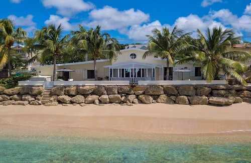 This is one of our beachfront Barbados villa rentals. It should be noted that beaches change their shape and size from day to day, week to week, and month to month, mainly as a response to seasonal waves, currents, and tides. Every effort has been made to depict the beach in front of this property, but as a result of sand deposition and erosion, changes may occur including a narrower beach and more rocks visible.
