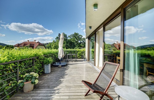 The house is in the middle of nature at a place of an old stone mine. The tram (56/59B/61) is 10 minutes walk to take you in 15 minutes to the main junction of Buda. You can park into the garage with two cars, store your bicycles safe and have plenty of storage. From the house you can walk or bike immediately in forests, visit the most beautiful locations of Buda Hills.