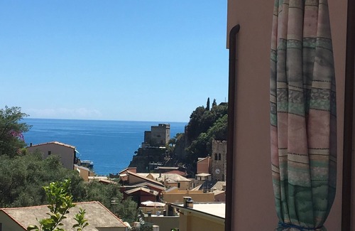 Apartment is 150 meters (3 minutes walk) from the historic center and 300 meters (five minutes walk) from the beaches, trails for the Cinque Terre, ferryboat. The apartment is located in a quiet and panoramic area. Two terraces overlooking the sea one of which is surrounded by greenery. Entering the apartment is accessed by a large hall divided into three zones: kitchen area, sleeping area (with double bed and wardrobe), relaxation area (with double sofa bed and television). From this room you access a lovely small sea-view terrace, a bathroom with shower and a double bedroom with another en-suite. The apartment can be very comfortable for two couples who have two bathrooms with shower.