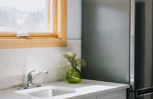ABRAHAM tiny home will become your home away from home! Everything you need is provided for your stay. There is a fully equipped kitchen, a dining area with a space saving gateleg table, living room with comfortable seating and a smart tv. Complimentary locally roasted Good Neighbour Coffee and a variety of teas. The heated floors make the bathroom heavenly. There is one QUEEN bed in the BEDROOM and two TWIN beds in the LOFT. Wake up in a peaceful mountain setting!