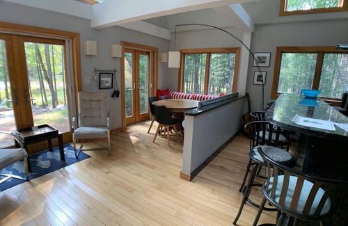 Peace and quiet in the woods on a natural, unspoiled lake. Fire pits, grills, well stocked game room for rainy days. Close to Saratoga, Lake George, rafting, hiking, swimming and all things fun! We ❤️ dogs!
