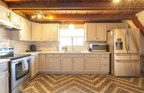 A cozy & moody retreat to come home to after a day of adventure & exploring the town, this cabin has been updated with modern day luxuries while still keeping a cozy mountain cabin feel. Cook a family meal in fully stocked kitchen with all new appliances, or choose a book from our collection to read by fireplace. A new remote controlled gas fireplace will keep you cozy while drinking your morning coffee.
