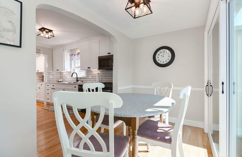 Nestled in a cul de sac and fronting on the Crane River, Afternoon Delight in historic Beverly is the perfect place to watch the river currents glide by. The riverfront wraparound deck offers a blissful place to sit or dine in either sun or shade, thanks to an exterior awning. In the garden, the lower terrace is fully fenced in and has a grape arbor for relaxation in the pleasant shade.
