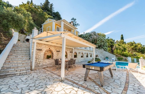 The Villa is located just above the small fishing port village of Agios Stefanos (Sinies) on the northeast coast of Corfu; known for its crystal clear waters, idyllic beaches, and picturesque surroundings.