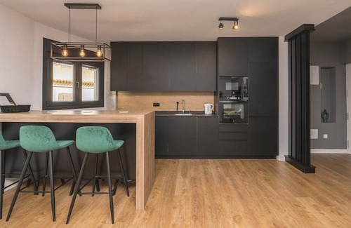 The apartment has been decorated greatly that radiates brightness and serenity. The large main space houses the living room, the kitchen area and the comfortable bar with stools where you can taste the dishes they cook during the holidays. The stay is equipped with air conditioning, Smart TV and ceramic hob in the kitchen. There is also a washing machine, iron and ironing board. The master bedroom offers a double bed and air conditioning. The sofa bed in the second bedroom is perfect for the extra guest. Finally, the bathroom in the house is equipped with a shower.