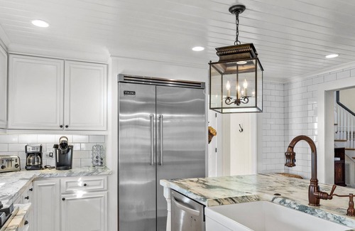 Upon arrival you will be greeted by a rocking chair front porch or you can enter through the private courtyard. Both entrances are lined with stunning rose gardens. In the back is the private in-ground pool (May through November, heating available) and outdoor kitchen with a JennAir gas grill.