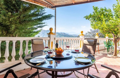 This cozy and spacious vacation home welcomes up to six guests. The house impresses especially with its great outdoor area. On the partly covered terraces you can have breakfast in the morning or end the day with a glass of wine from the vineyards outside your door. A barbecue for cozy barbecue evenings is also at your disposal. On the comfortable garden furniture you can enjoy the wonderful weather of southern Spain all day long and take in the beautiful panorama.
