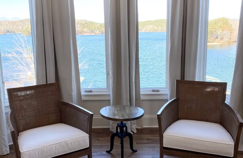 Situated in a quiet cove on North Lake Keowee, this is the perfect home for a single or multi family getaway. This 5 bedroom home comfortably sleeps 12 and has a lovely deck for afternoon cocktails, beautiful sun sets and lower covered patio with large tables for dining outside. There are plenty of Rocking Chairs all over the outside of the home to kick back and relax.