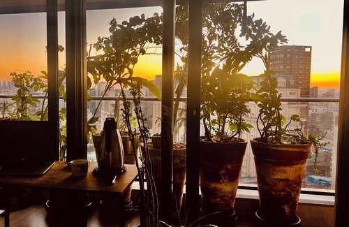 Experience amazing views and sunsets, overlooking the city skyline and the horizon from our balcony garden.