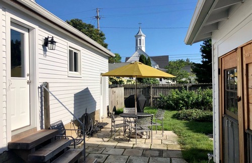 Our home is larger than most! We have one of the largest homes (2,000sf) available in town with plenty of indoor and outdoor space for guests! This large historic home offers 3 bedrooms, 1.5 bathrooms plus a pull out sofa on the first floor. The upstairs bedrooms have gorgeous original pine floors, original built-ins and extensive, natural woodwork. The main level offers an inviting living room with a large 70" smart television and an oversized sectional couch. The inviting dining room seats 8 for game night or dinner at home. Additional tv in the den offers a separate space for guests. The vintage kitchen brings the small town vibe right into this home! Enjoy the garage clubhouse with tv, darts, string lights and more! This home is fresh and clean!
