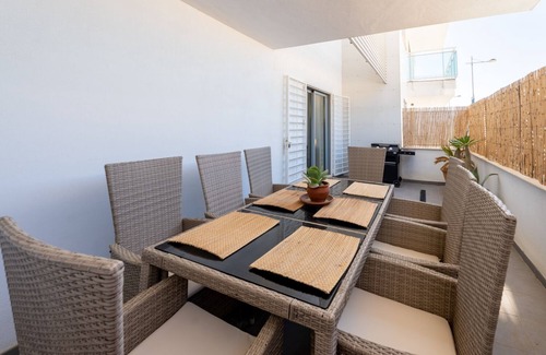 The apartment is distributed in a spacious living room, with 45" TV (Smart TV), air conditioning, free Wi-Fi, and exit to the terrace; the fully equipped kitchen with dishwasher, oven, fridge freezer, toaster, coffee maker etc.