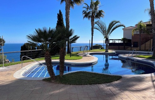The apartment features a private outdoor area with an open terrace, a balcony, and a barbecue. Guests also have access to a shared outdoor area that includes two pools, one of which is an infinity pool. The pools are open from March to December.